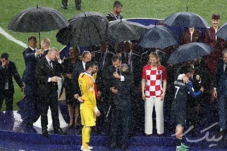 روس‌ها چتری بزرگ را بالای سر رییس جمهور خود گرفته بودند تا پوتین خیس نشود. ماکرون ، رئیس جمهور فرانسه زیر باران مانده بود و خانم کیتاروویپچ رئیس جمهور کرواسی در حالی که خیس آب بود بازیکنان را در آغوش می‌گرفت.